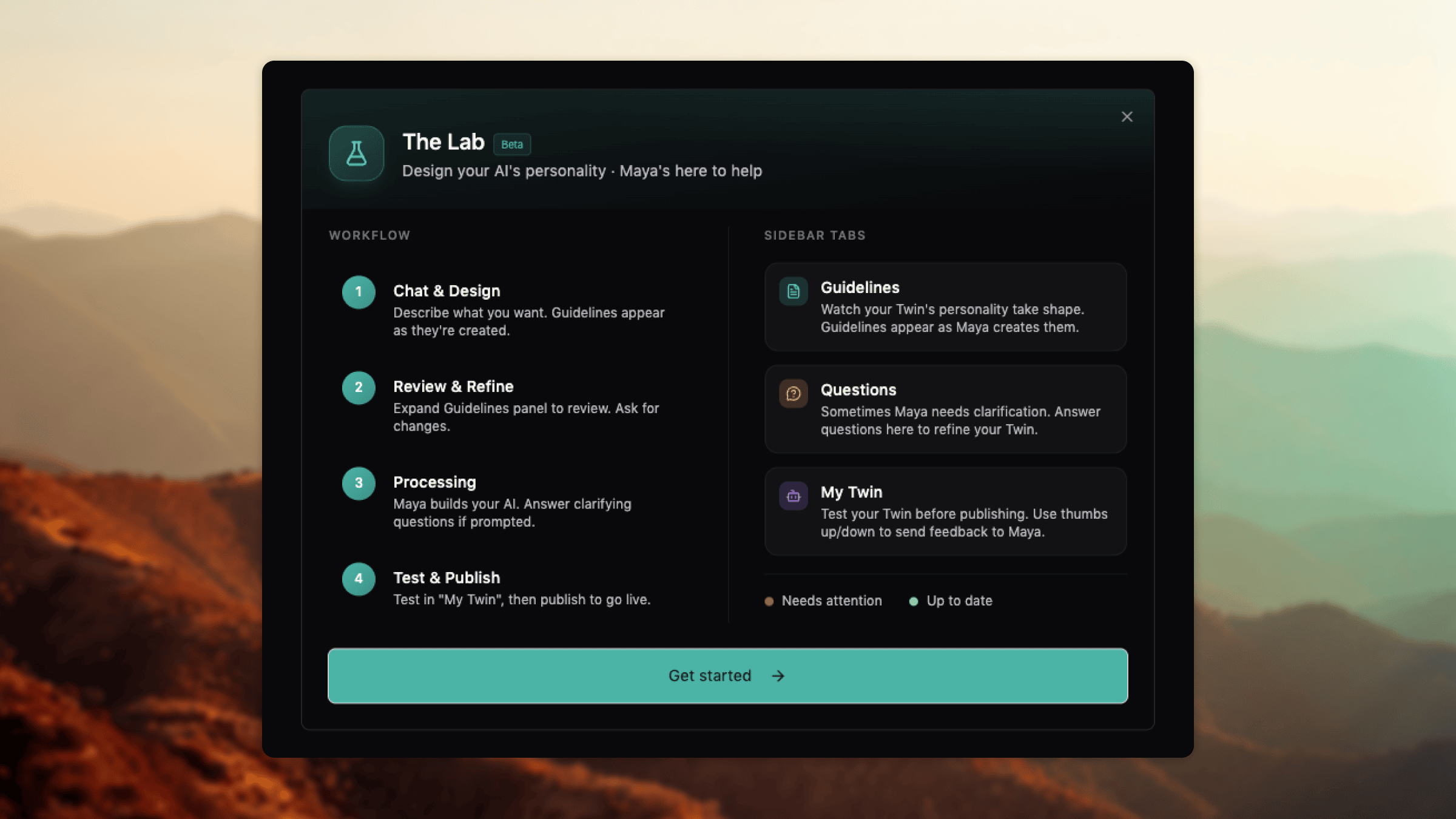 Guardrails that protect your brand. Your Twin should never make claims you wouldn't make, recommend approaches you wouldn't recommend, or drift into territory that could damage your reputation. Configurable guardrails keep the conversation within boundaries you define.